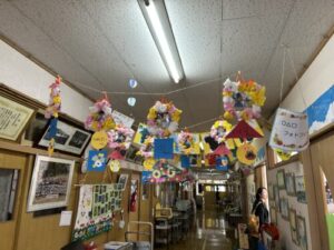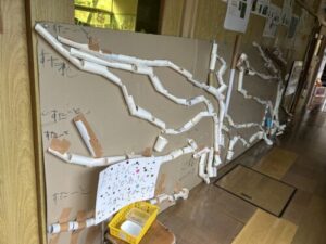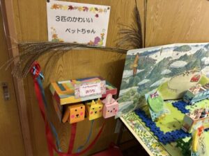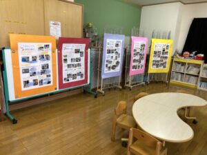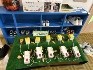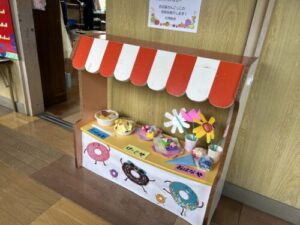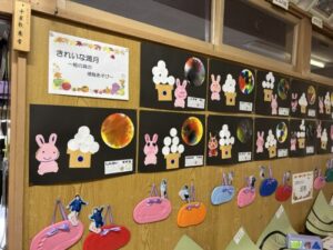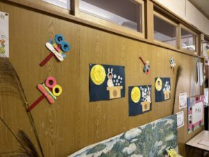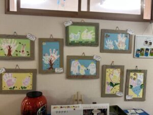 今年度に入りこども達が制作した作品をクラス前に展示しました。