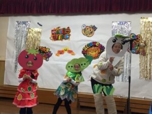 今回のハロウィンパーティーのテーマは「ダンスコンテスト!」先生たちが仮装してコンテストに参加しました。優勝は、ピーコとれーこのひよこに仮装した先生とお友達の優勝でした!