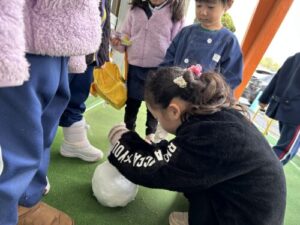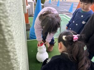 11月18日に降った雪でバスの先生が雪だるまをつくってくれたよ!