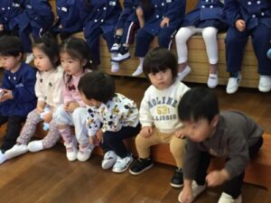 みんな餅をつく先生やお父さんを応援していました!くるみハウスさんはまねっこしながら応援していましたよ!