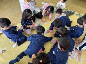 未就園児教室の【ぴょんちゃんクラス】では満3歳児と一緒にクラス活動を体験することができますので、みなさんぜひ未就園児教室に遊びに来てください!