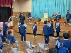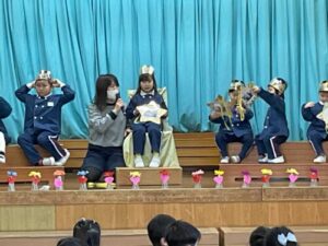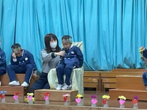 今月からは、年中組さんは年長組さんにお仕事を教えてもらいながらお花のアーチ・司会をしましたよ!