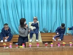 先生からのお祝いですが、今回はくるみハウスさんが先生と一緒に出し物をしてくれました。
