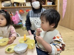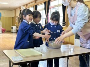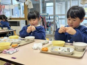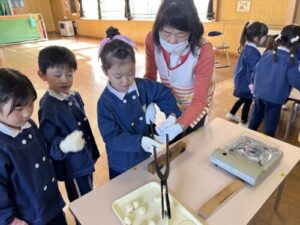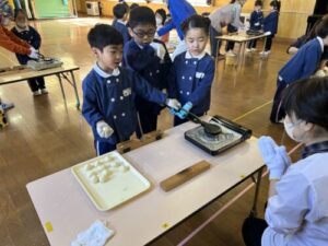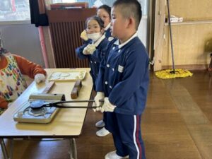 2月19日(木)年長組さんがせんべい焼きに挑戦しました。