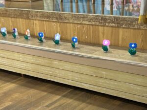 4月からたくさんの折り紙を折ってお誕生会を飾ってくれた年長組さん。