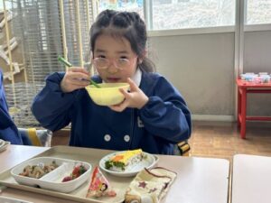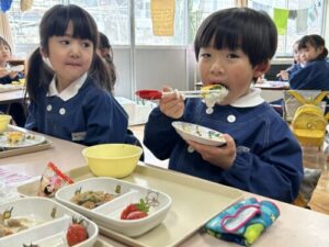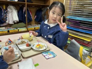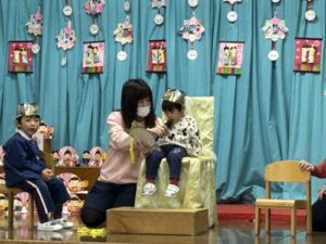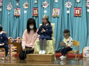 今月はひな祭り会と一緒の日のお誕生会でしたので、先生方からのお祝いはホームページの「ひな祭り会」をご覧になってください。