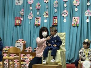 好きな遊びを聞かれて元気にマイクで教えてくれた3月生まれのお友達。