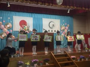 ステージ上でも、幼稚園で頑張ることを発表できてとても立派な進入園児のみなさんでした。