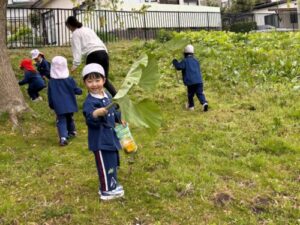 長者幼稚園のこども達はわんぱくの森で春を探す探検隊に変身していました!