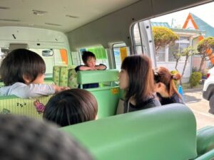 バスで通園しているお友達だけではなく、バスでお出かけもする長者幼稚園のこども達。
