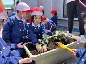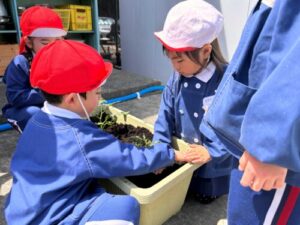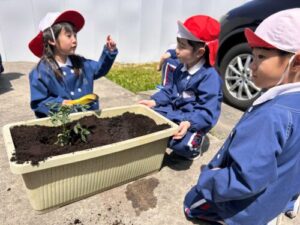 年長組さん 何しているの? 2026年4月30日 37 年長組さんが数回クラスで話し合いをして 今年の科学は何を育てるか決めたようですよ! 植えている時も相談したり意見を出しあっている年長組さん 何を育てるのかな?